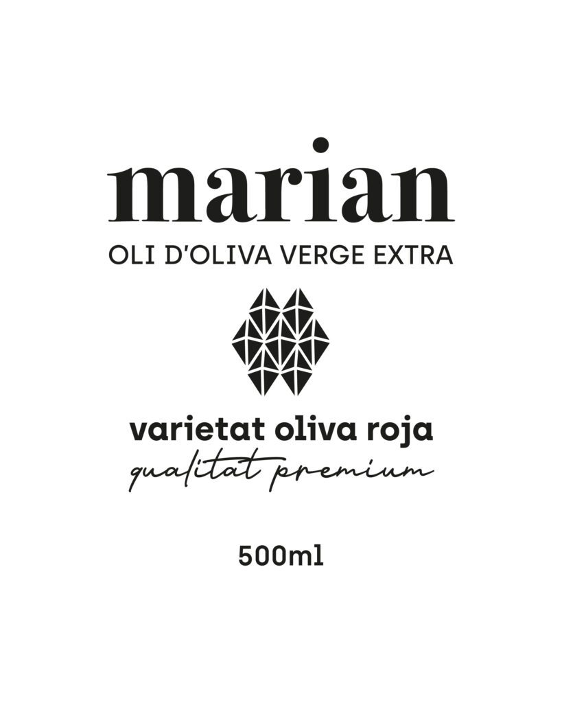 Marian és el nom d’aquest oli d’oliva. Ve donat per una dona lluitadora, protectora i forta, clau important de la família, a la qui van decidir fer aquest homenatge. La part visual (rombes) estan vinculats amb la forma que tenien els gots de casa seva. Així representen el moment de trobades i de compartir una menjada en família 🥰