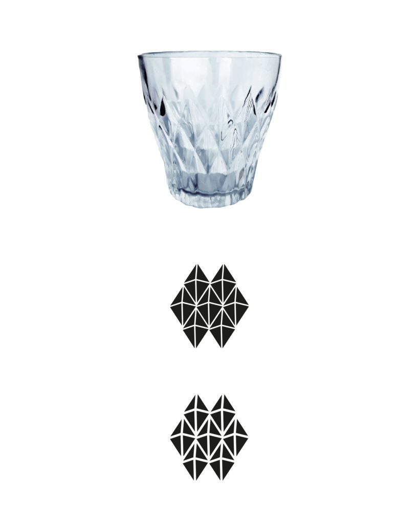 Se’n va extreure la forma bàsica del rombe que predominava el disseny del got. Gràcies al retoc dels espais entre rombes, se li va donar una millor visibilitat i facilitat d’estampació. La tècnica d’acabat de l’ampolla es va fer en serigrafia directa sobre el vidre.