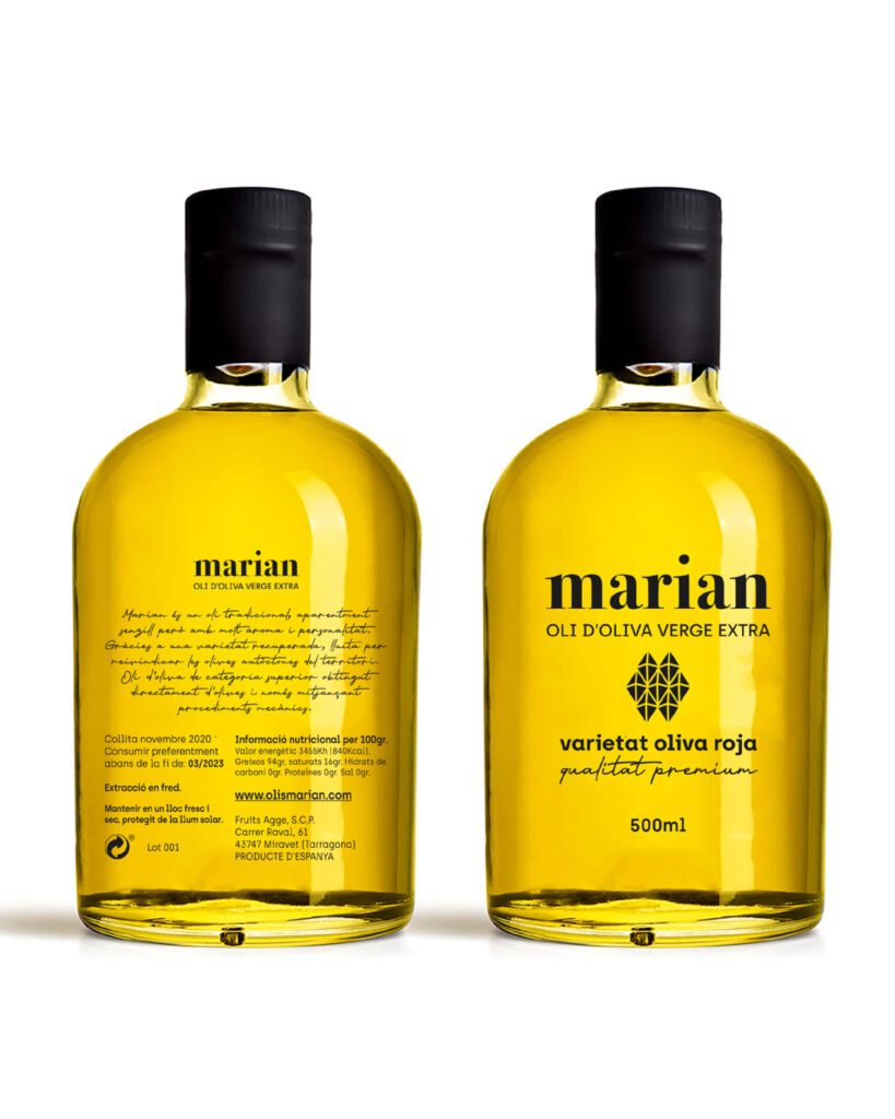 L’oli d’oliva Marian és verge extra. Les olives són de Miravet (Ribera d’Ebre) i del Pinell de Brai (Terra Alta). Un producte de territori, i de qualitat 💎 Fet amb la varietat d’oliva roja (morruda), recuperada del territori.